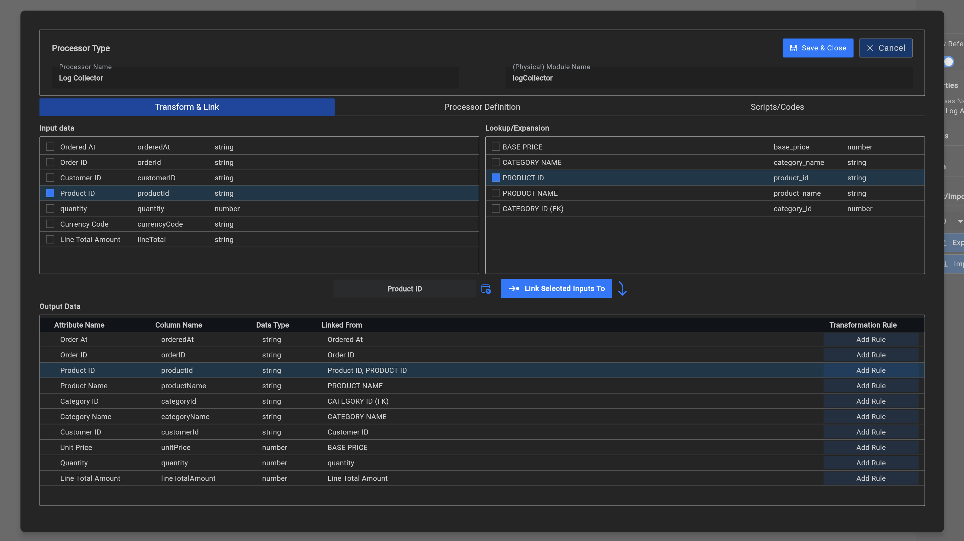 「注文ログ」から「販売テーブル」まで。変換を定義すれば、AIがSQLとコードを作成します。